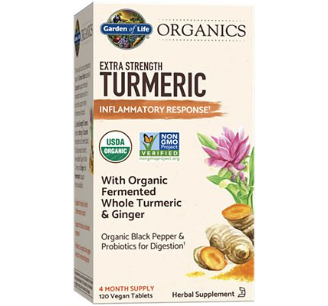 Garden of Life Organics Extra Strength Turmeric – Inflammatory Response with Black Pepper & Ginger (120 Vegan Tablets)