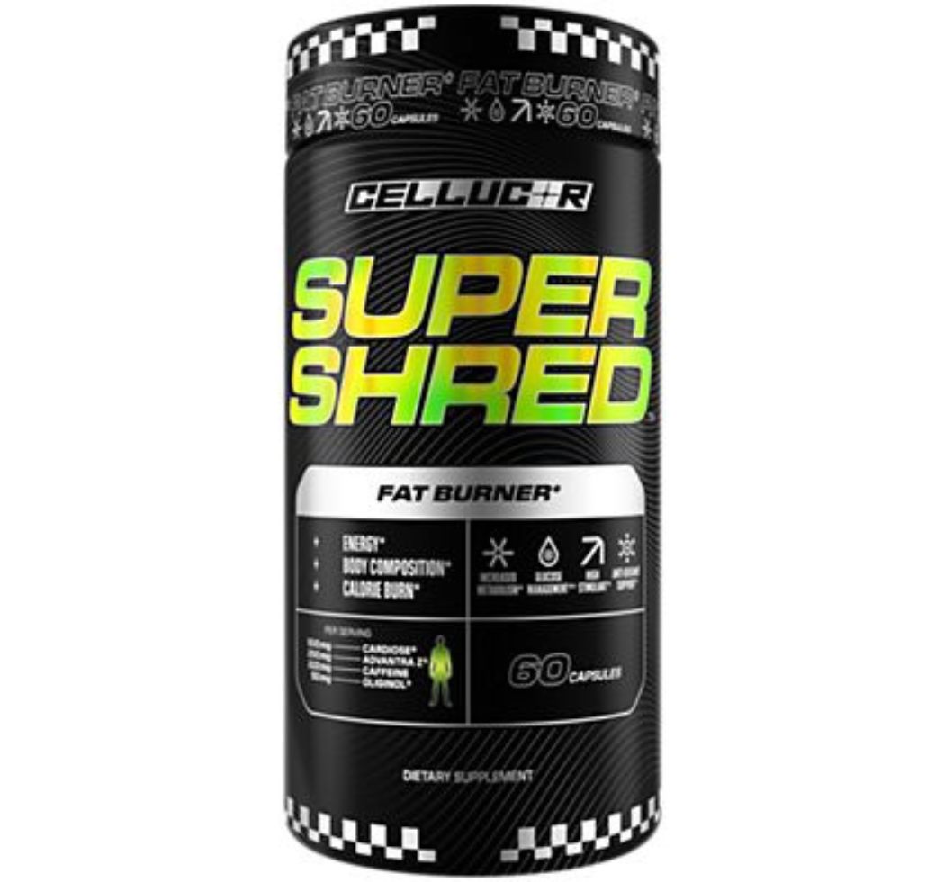 Unlock your shredded physique with Super Shred from Cellucor. This high-stim fat burner supports body composition, accelerated calorie burning, endurance, and energy with Advantra-Z®, cayenne extract, Cardiose®, caffeine, and yohimbe.